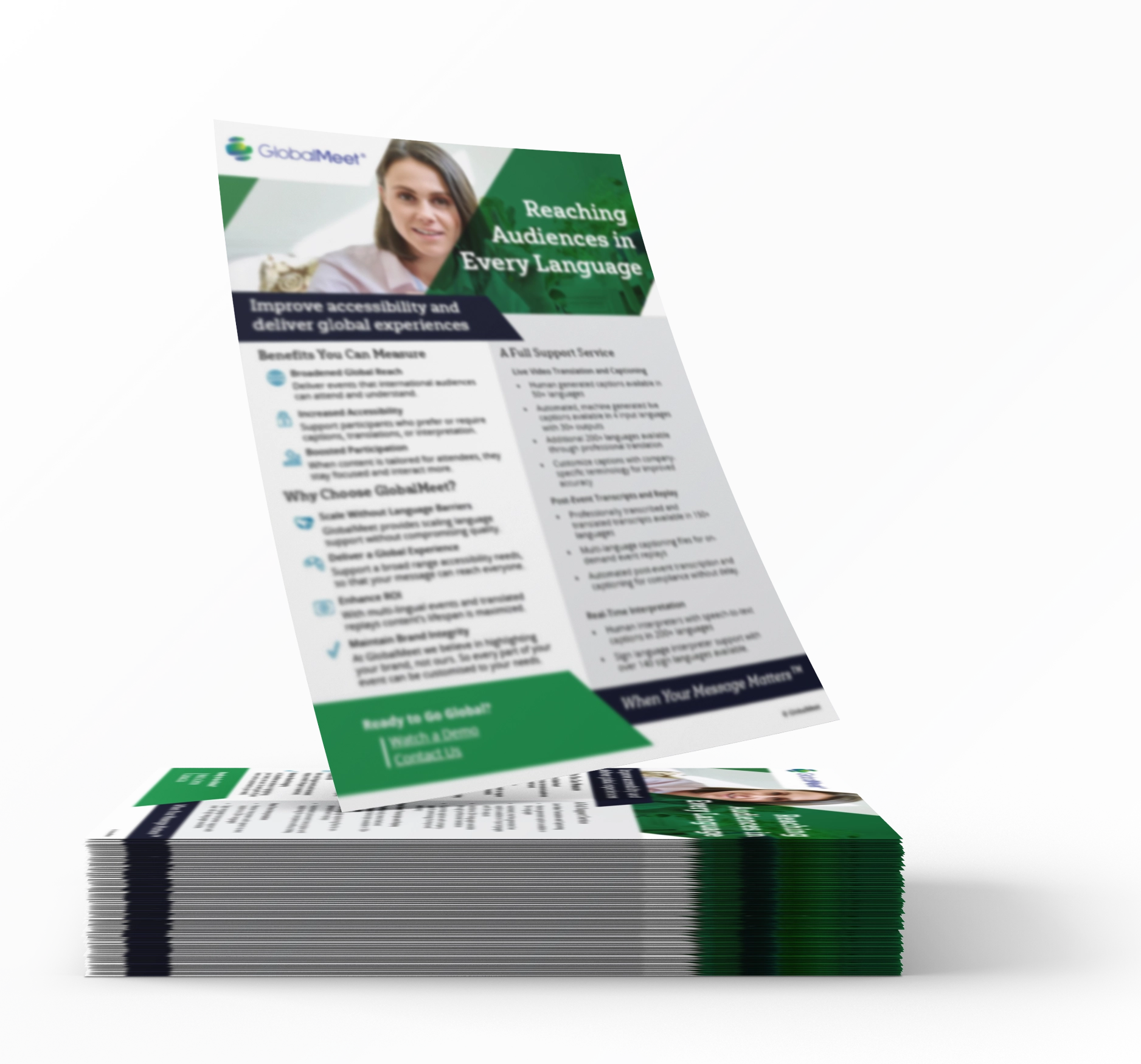 Find out how your organization can improve accessibility and deliver global experiences with GlobalMeet’s full suite of Languages, Translation, and Captioning features.