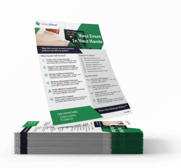 Learn about GlobalMeet's Self Service Virtual Events Packages that put you in the driving seat for every stage of your event.